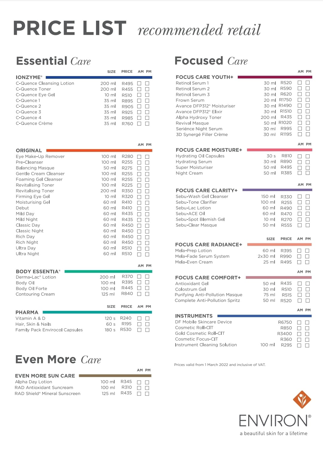 Eastern Cape Distributor of Environ Skin Care Products
